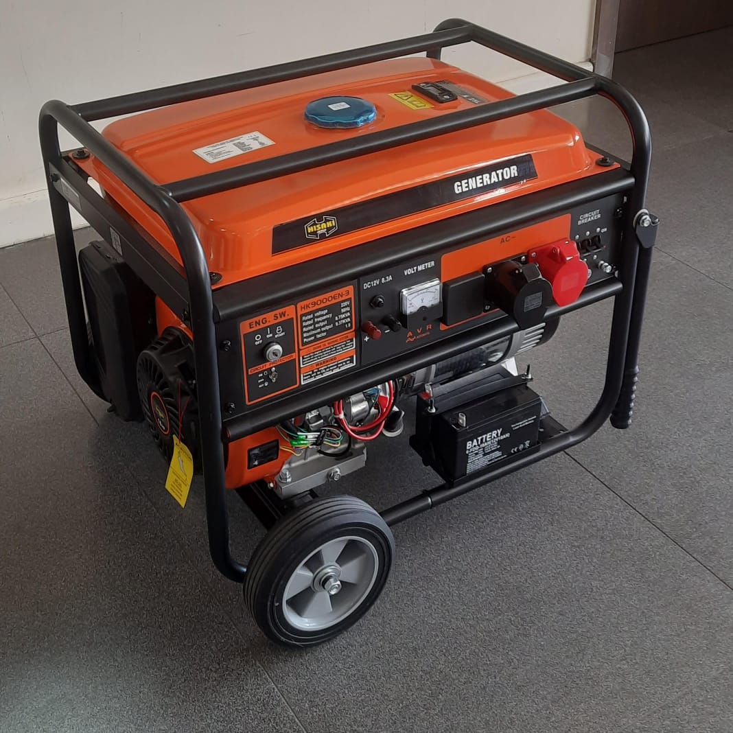 The HK9000EN-3 Hisaki Japan Petrol Generator is a high-capacity 8.8kVA power solution designed for demanding applications. With both single and three-phase output capability, it offers unmatched flexibility for powering a wide range of equipmentβfrom household appliances to industrial tools. Its powerful petrol engine ensures stable and reliable electricity, while the key start system provides effortless operation. Built with durability and efficiency in mind, this generator is ideal for anyone needing dependable power for home, business, or site use.