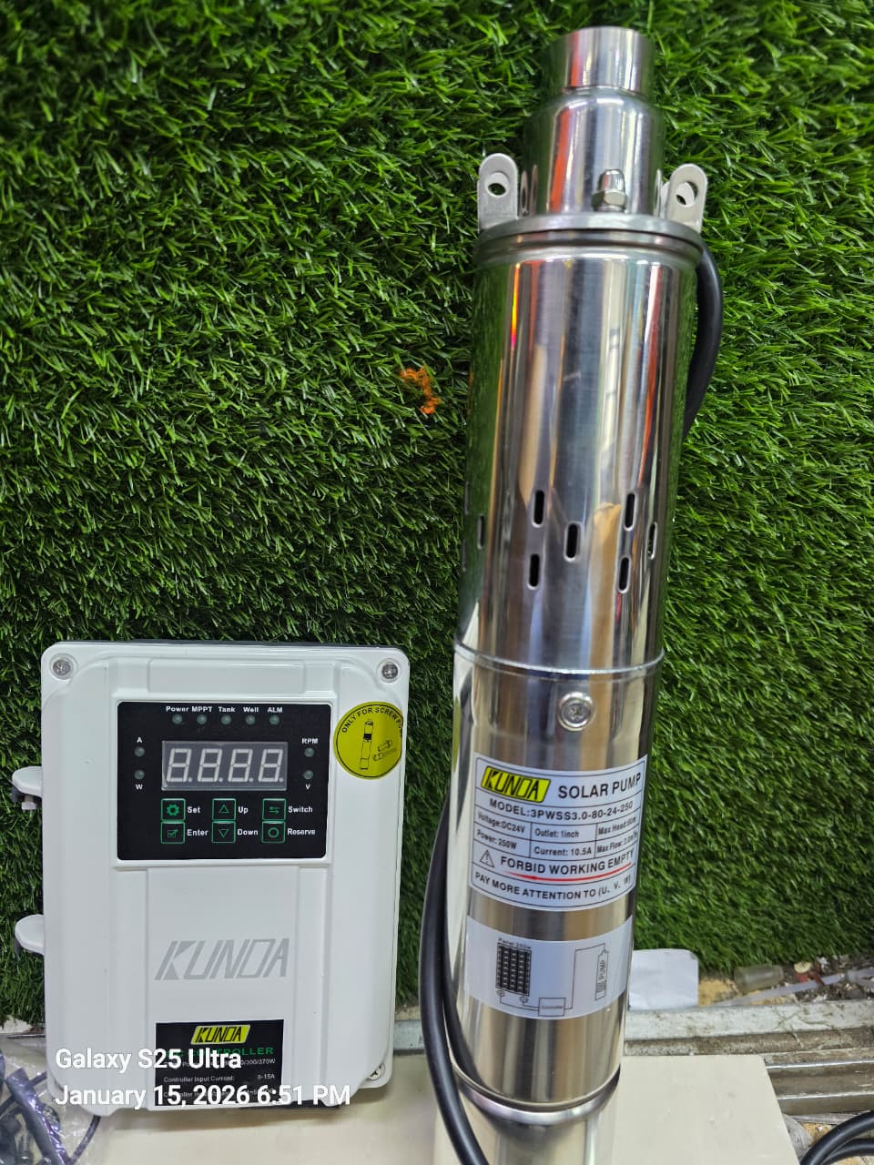 - High-Efficiency 250W Motor – Delivers strong and reliable water pumping performance using solar energy