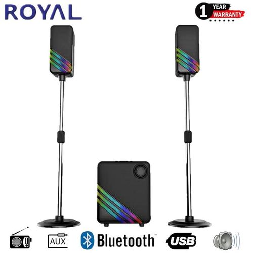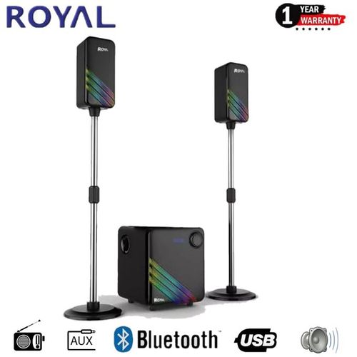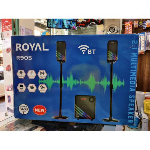The Royal R905 High Tech Multimedia Sound System is a versatile 2.1 channel audio setup that enhances your home entertainment with clear sound, powerful bass, and flexible connectivity. Featuring Bluetooth, USB, SD card, FM radio, and AUX support, it’s built for music, movies, and everyday audio enjoyment.