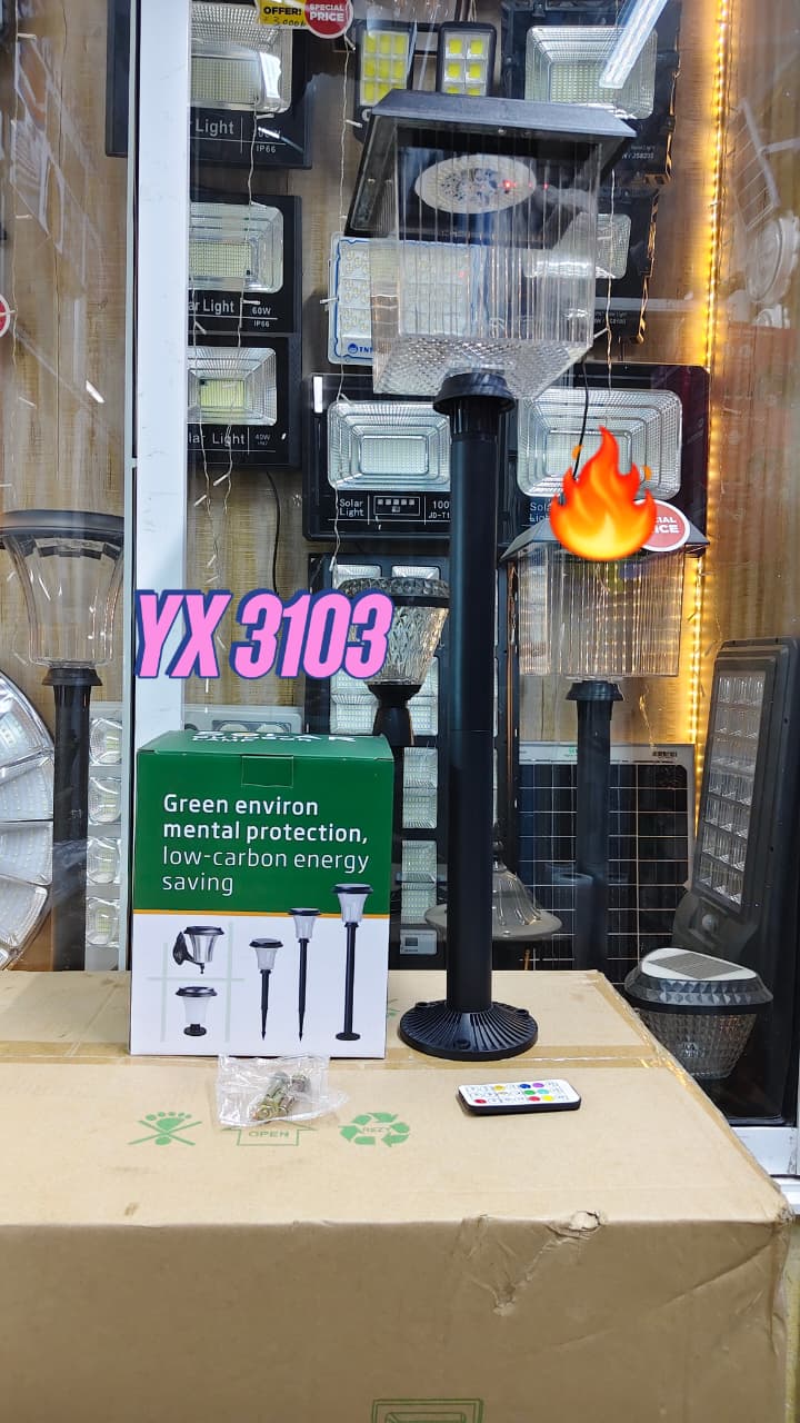 The YX 3103 Solar Garden Pillar Light is a stylish and energy-efficient outdoor lighting solution designed to sit on gate posts, fence pillars, and garden columns. It charges during the day using solar energy and automatically lights up at night, providing both security and decorative appeal. Built for outdoor durability, it offers a perfect blend of functionality and landscape enhancement for modern homes and commercial spaces.